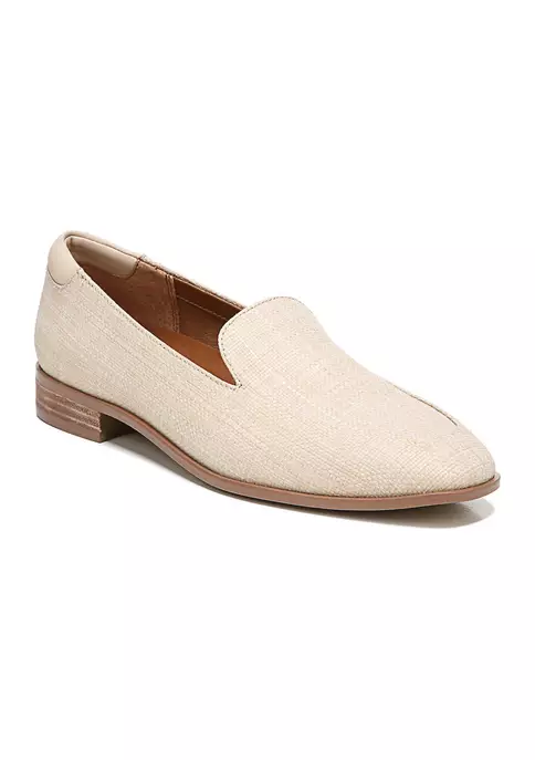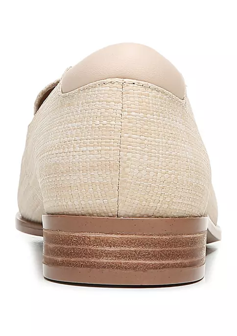 The Carlina Oatmeal Loafers are tweed apron toe loafers set on a stacked heel.