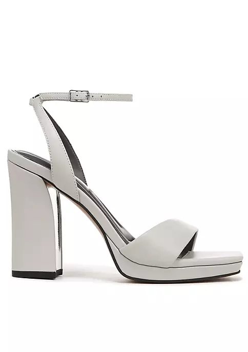 An exceptionally elevated dress sandal that exudes beauty. Nappa leather or suede upper. Eco-conscious linings with soft + sustainable comfort. Ankle strap with adjustable buckle. Square toe. InFORMA comfort technology: Ergonomic insoles, contoured padding at key pressure points, and exceptional support. 4 inch block heel with shiny accent.