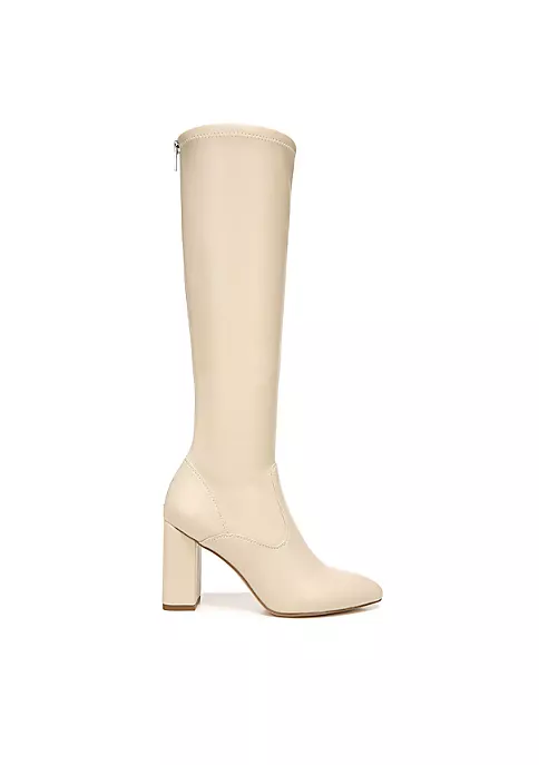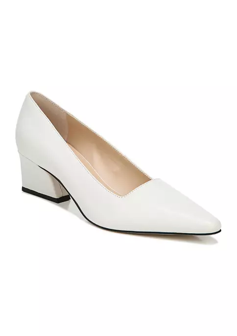An architectural block heel gives this pointed-toe pump an artistic feel.