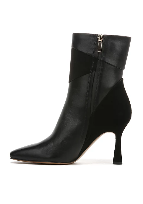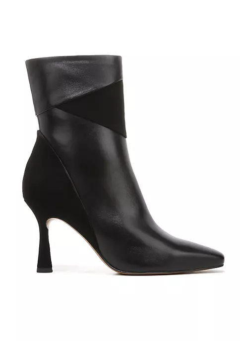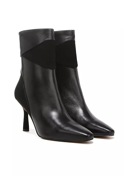 An exceptional snip toe bootie crafted to perfection. Nappa leather or suede upper. Eco-conscious linings with soft + sustainable comfort. Side zip. Snip toe. 6.30 inch shaft height, 9.84 inch circumference. 3.35 inch heel.