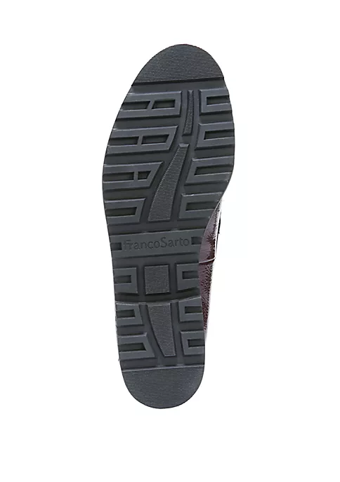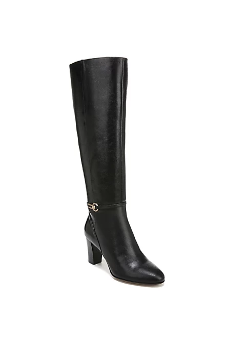 Embrace every detail in this knee-high boot with metallic hardware accents. Leather upper. Eco-conscious linings with soft + sustainable comfort. Side zip. Almond toe. Wraparound strap with metallic accent. 15.94 inch shaft height, 14.96 inch circumference. 3 inch heel.