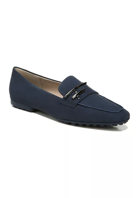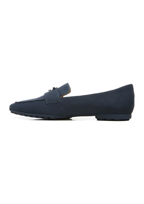 The Starland pointed-toe loafers by Franco Sarto feature a metallic touch along the heel, creating a modern wardrobe staple.