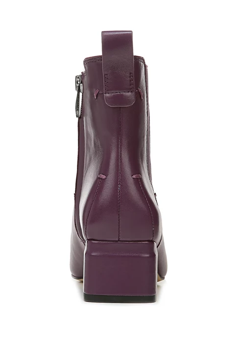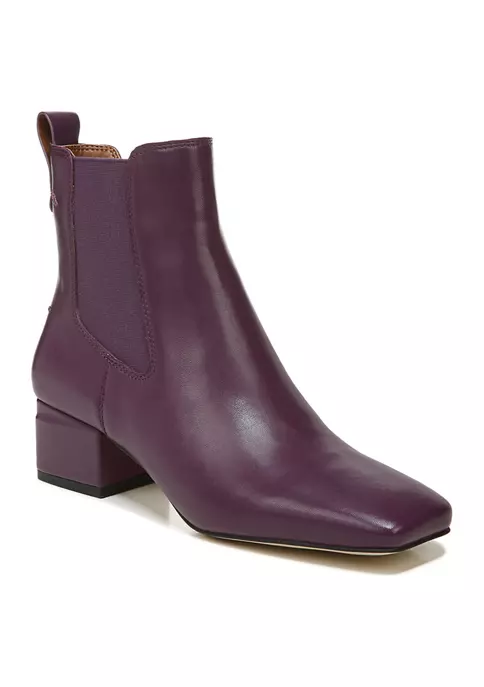 A modern square toe brings this sleek bootie with stretch to the next level of style and craft. Snake-printed fabric or Nappa leather upper responsibly sourced through the Leather Working Group. Eco-conscious linings with soft + sustainable comfort. Slip-on fit with back pull tab and stretch gore panels for extra flexibility. Square toe. 5.2 inch shaft height, 9.45 inch circumference. 2.2 inch block heel.